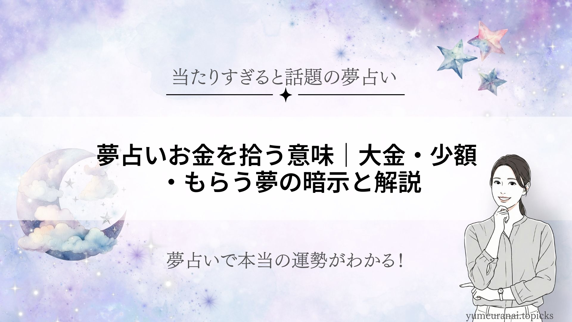 「夢占い」夢は、金運アップや幸運をイメージする方も多いですが、実は愛情や心の状態を強く映し出します。お金の夢は状況によって意味が大きく変化し、拾う・受け取る・数えるなどシーンごとに異なる暗示が含まれています。この記事では、「夢占い」の本... -