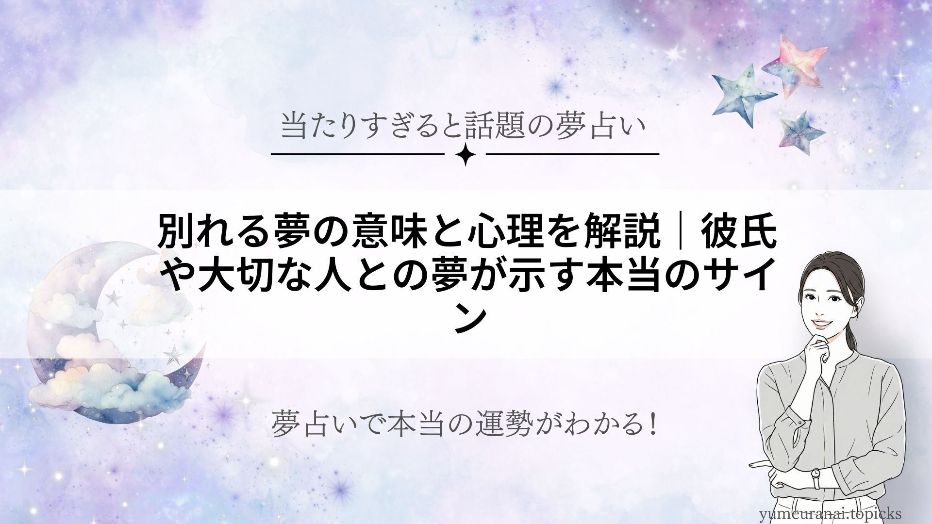 「彼氏や大切な人と別れる夢を見てしまって、朝から不安な気持ちになった…」そんな経験はありませんか? 実は、別れる夢は単なる悪い予兆や不吉なものではなく、深い心理やあなたの愛情、今の関係性を映し出す大切なメッセージが込められています。 この記... -