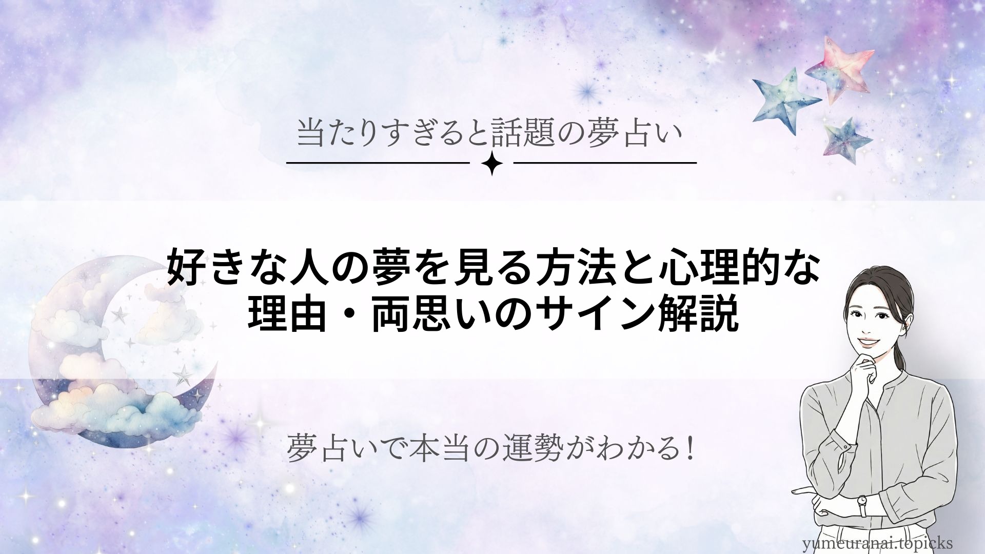 本記事では好きな人の夢を見る方法にフォーカスし、夢に好きな人が登場する心理的な理由や、夢のシーンごとの意味、現実の恋愛をもっと前向きにするためのヒントまで、わかりやすく丁寧に解説します。