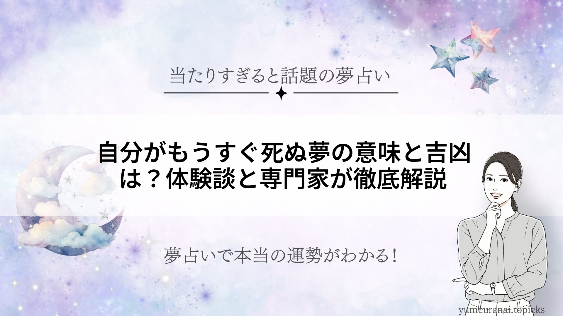 ここでは、夢鑑定士®資格を持つ編集者が、「自分がもうすぐ死ぬ夢」が持つ意味や注意点をまとめます。専門家の視点から夢を読み解くヒントをお届けします。