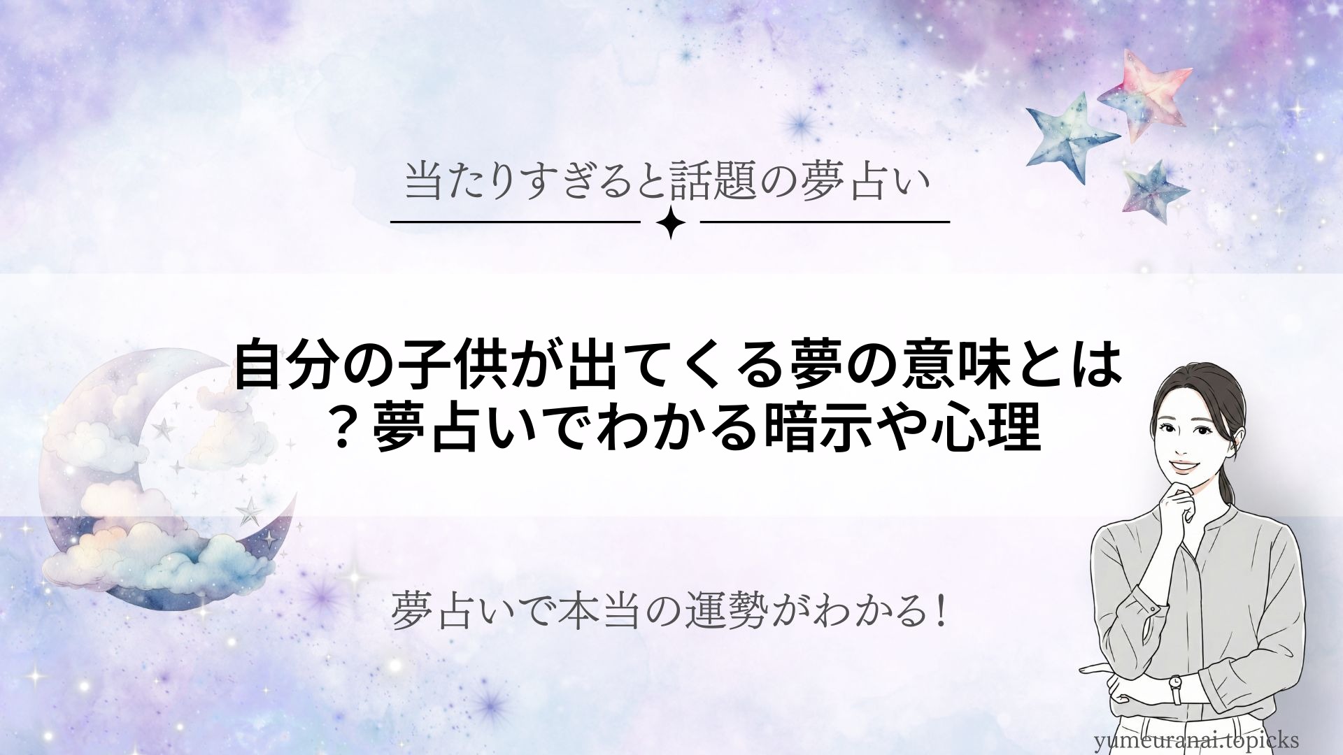 夢に「子供」が登場する時、特に「自分の子供が出てくる夢」を見た経験はありませんか?この夢にはどんな暗示やメッセージが込められているのでしょうか。子供の夢は、心の奥にある純粋さや不安、成長や可能性の象徴とされ、状況によって吉夢にも警告にもなります。本記事では、「自分の子供が出てくる夢」をはじめ、さまざまな子供にまつわる夢の意味を夢占い視点から徹底解説します。シーンごとの解釈や日常への活かし方も紹介しますので、夢の内容が気になる方はぜひ参考にしてください。