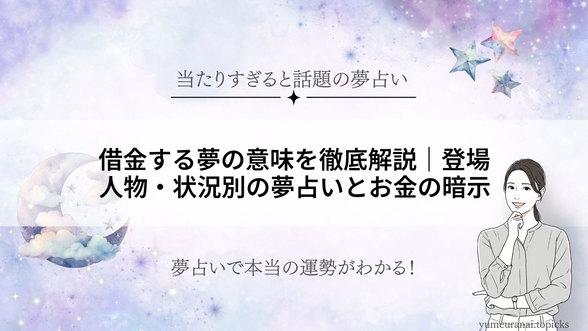 借金する夢を見て、不安を感じたことはありませんか?「もしかして現実でも借金を抱える暗示?」と心配になった方も多いはず。夢占いで「借金する夢」は、必ずしも悪い意味だけでなく、あなたの心理状態やこれからの運気を映し出す重要なメッセージです。本記事では、借金する夢の基本的な意味から、登場人物・状況・目的別の解釈、そしてお金に関する他の夢の意味まで、専門的かつ分かりやすく徹底解説!あなたの夢がどんなサインを示しているのか、一緒に読み解いていきましょう。