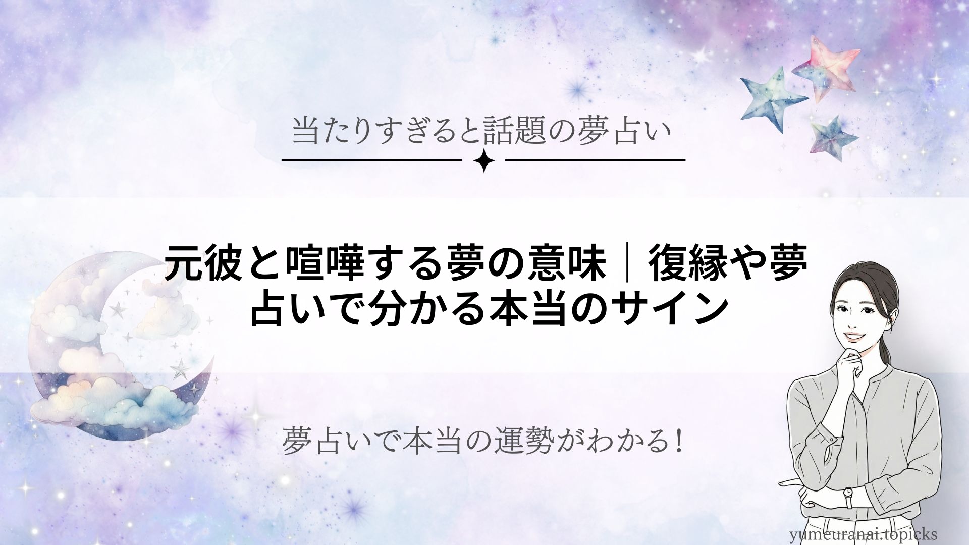 「元彼と喧嘩する夢」も含めて、具体的な夢の内容別に、その深層心理や暗示を詳しく解説します。