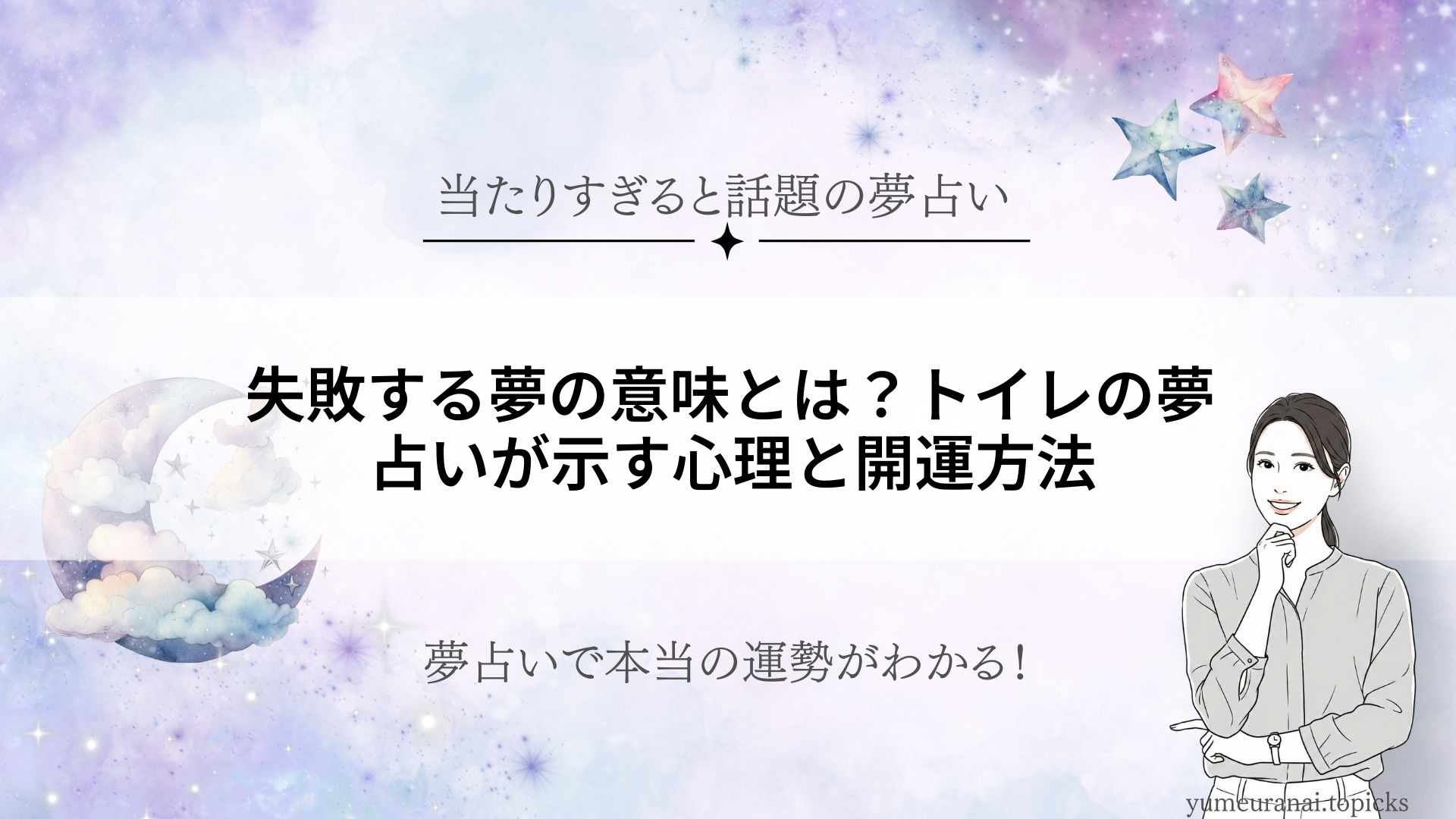 「失敗する夢」を見て不安になった経験はありませんか?とくにトイレに関する夢での失敗は、現実のストレスや悩み、心の状態を色濃く映し出すものです。本記事では、トイレの夢が持つ基本的な意味や、失敗する夢があなたに与えるメッセージを、状態・行動・場所・登場人物ごとに詳しく解説します。自分の夢が何を暗示しているのか、そして心を浄化し運気をアップさせる方法まで、夢占いの観点から徹底的にご紹介します。