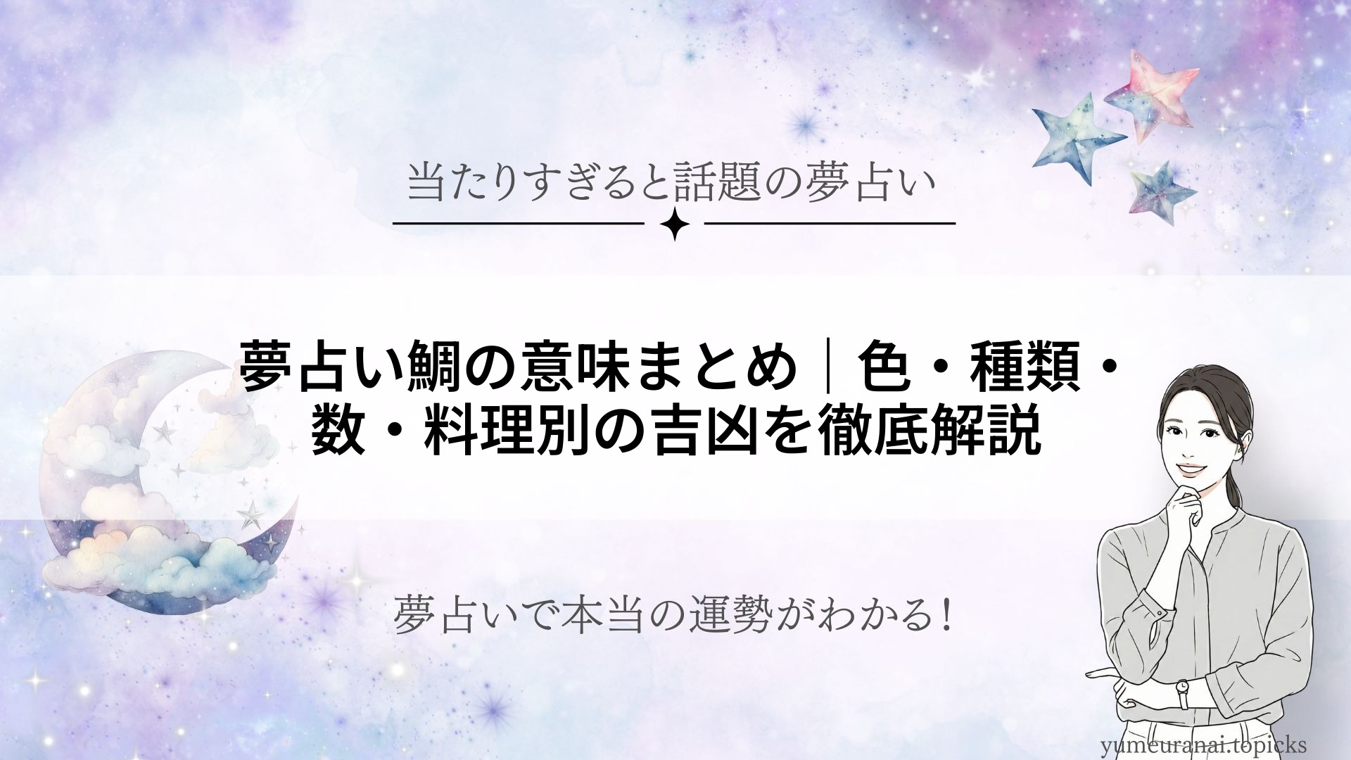 夢の中に現れる鯛は、古来より幸運や繁栄、喜びの象徴とされてきました。「夢占い」というキーワードには、色や種類、状況、数、料理、登場する舞台や人間との関係、感情など多角的な意味合いが込められています。本記事では、256パターンに及ぶ鯛の夢占いについて、分かりやすく・実用的に徹底解説。あなたの夢に現れた鯛がどんな意味を持つのか、具体的なエピソードや状況別に読み解いていきます!