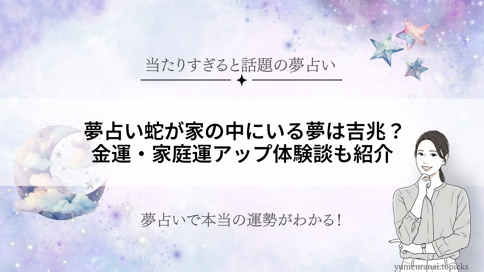 夢に蛇が家の中に現れる――そのリアルな光景に、目覚めてからも心がざわつく方は多いのではないでしょうか。「夢占い」というテーマは、吉兆なのか不安のサインなのか、知りたいという強いニーズがあります。この記事では、実際にこの夢を見た方のアンケー... -