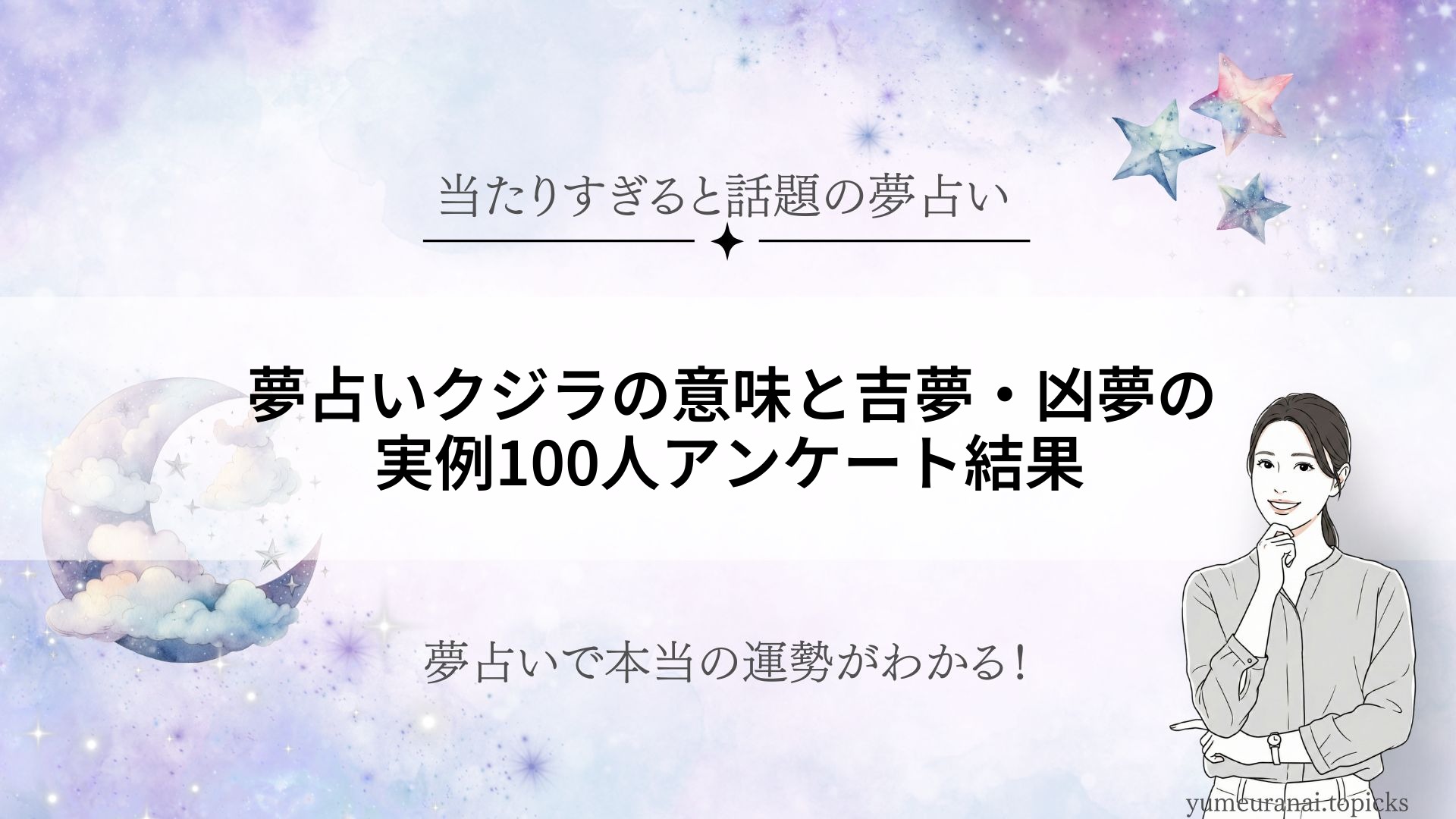 クジラの夢を見たとき、「これは吉夢?それとも凶夢?」と気になる方は多いのではないでしょうか。 夢占いは、単なる動物の登場に留まらず、あなたの人生や人間関係、運気にまつわる重要なメッセージを象徴しています。 本記事では、豊富なケース別解説や...