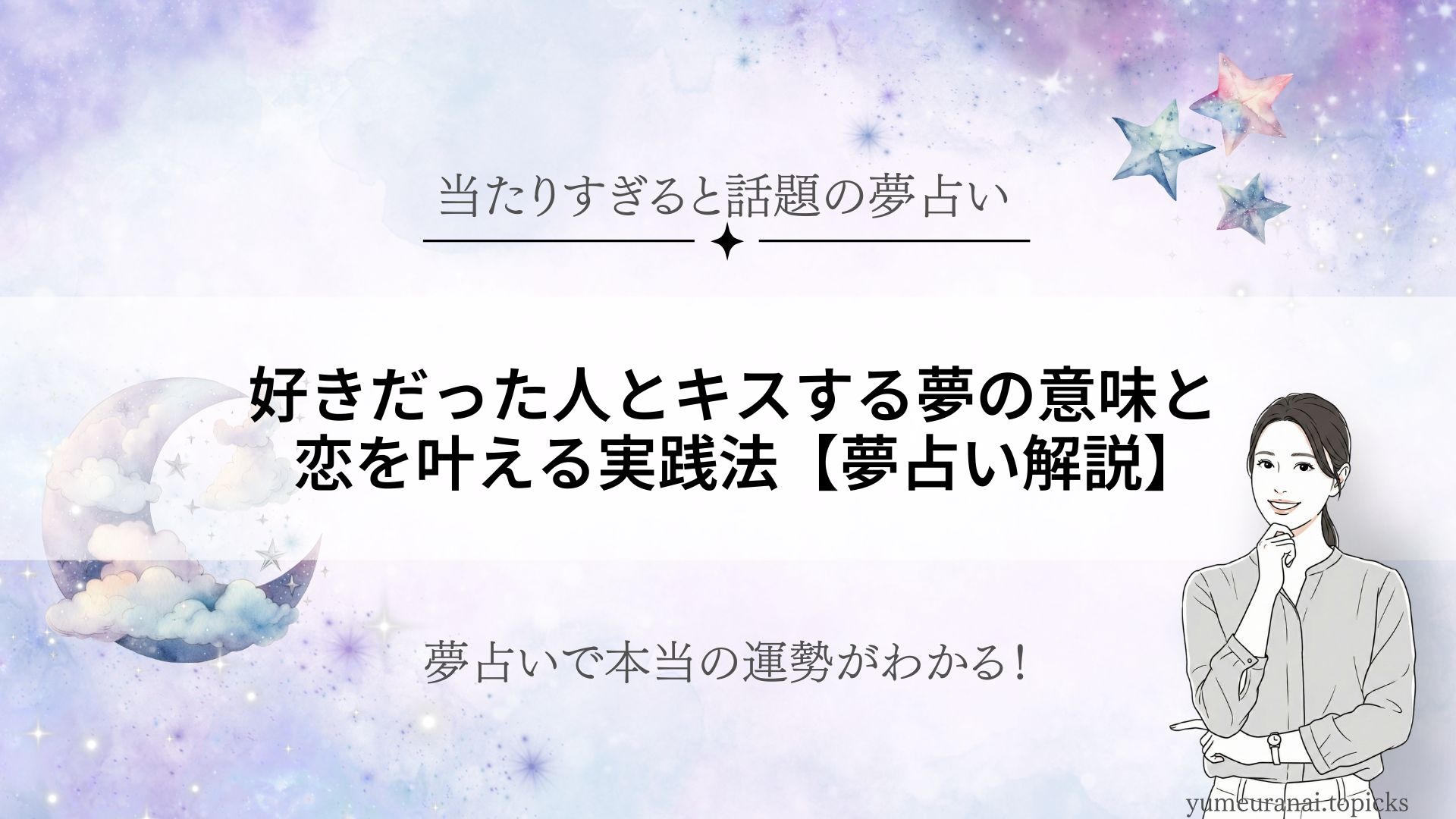 「好きだった人とキスする夢」を見て、朝からドキドキした経験はありませんか?過去に想いを寄せていた相手が夢に現れ、しかもキスするシーンとなれば、その意味や心理が気になってしまうものです。夢占いでは、好きだった人とキスする夢は、あなたの気持... -