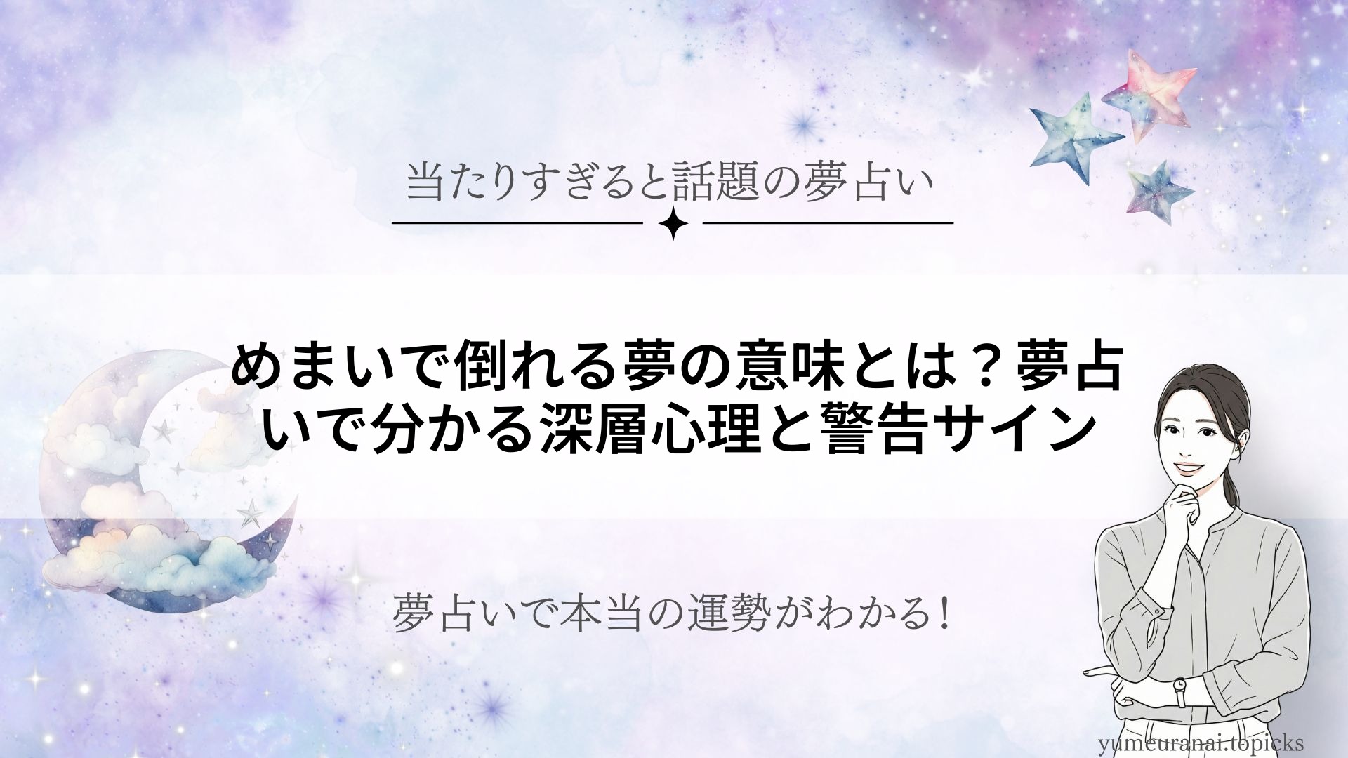 夜中にふと目覚めて、強烈なめまいで倒れる夢を見てしまった…そんな不安な体験をしたことはありませんか? 「めまい」は、ただの怖い夢ではなく、あなたの心や体からの大切なメッセージが隠されています。 本記事では、夢占いの専門的な視点から、めまいで...