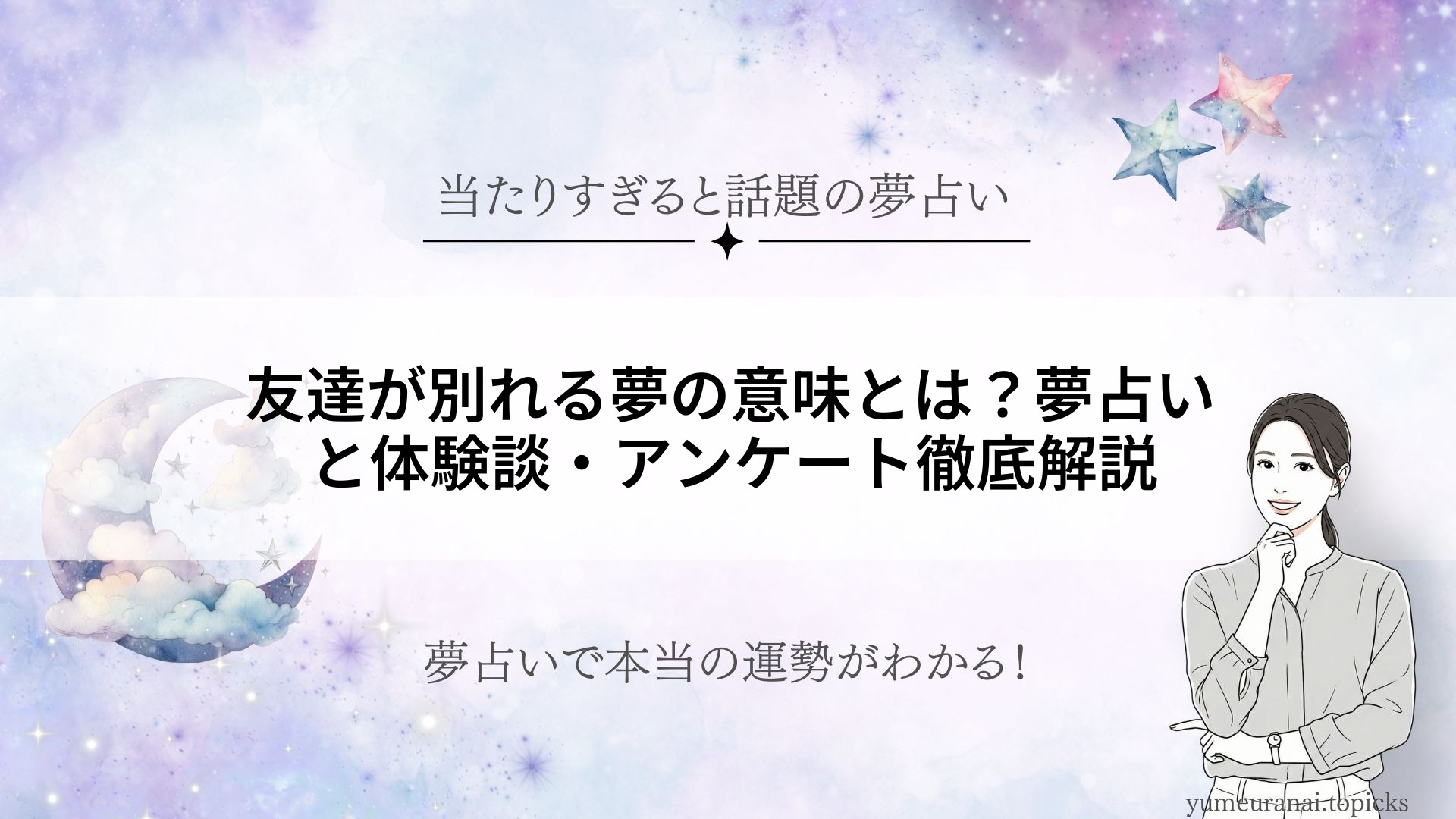 夢の中で「友達が別れる夢」を見て、不安や戸惑いを感じた経験はありませんか?この夢は単なる偶然ではなく、あなたの深層心理や人間関係の変化を暗示していることが多いのです。 本記事では、100名へのアンケートや夢鑑定士の専門的な解説をもとに、「友... -