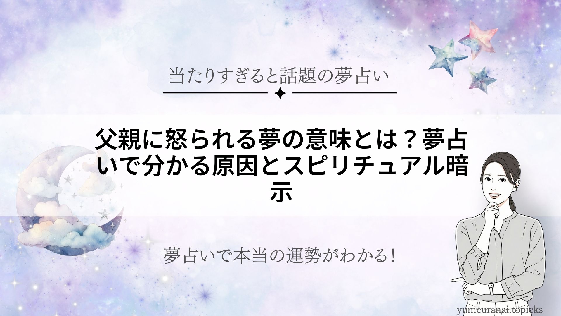「父親に怒られる夢」を見て目覚めたとき、ただの悪夢だと思っていませんか?実はこの夢には、あなたの心の状態や人生の転機、時にスピリチュアルなメッセージが隠れています。 本記事では「父親に怒られる夢」の意味を中心に、怒られる夢全般のスピリチュ... -